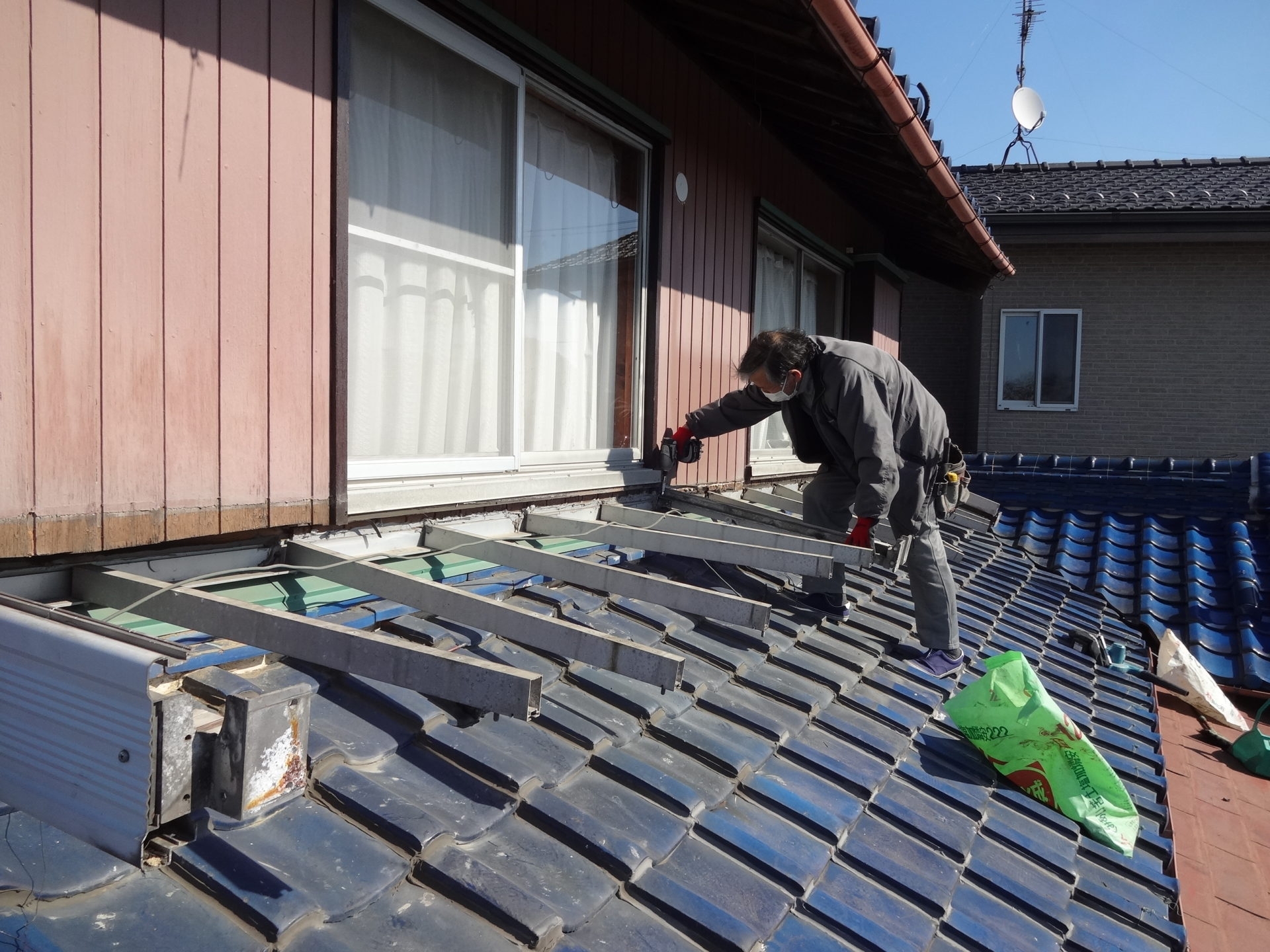 「サッシ(窓)取付」新しく変わっていきます☆ ブログをご覧の皆様、こんにちは! 今日は、先日瑞穂市のU様邸へ足場の組立が出来たのでサッシ取付作業を昨日行いました!既存の窓を取外し新しい窓の取付です。 2階まで運ぶのに足場を使い大工さんと社長で少しずつあげていきます。重さや大きさが大きいので慎重に上まで運びました。 これから、綺麗なサッシ(窓)に変わっていき綺麗になるのでお楽しみに☆